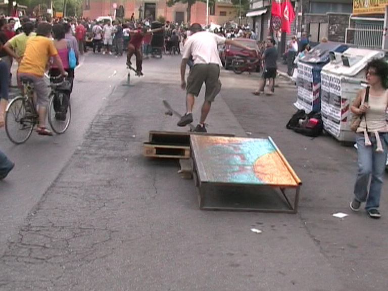 Il movimento antifascista di Centocelle e dei compagni e delle compagne di tutta Roma e del Lazio ha indetto una grande festa nella piazza in cui si sarebbe dovuto svolgere, nello stesso giorno, un comizio di Forza Nuova con Fiore che doveva parlare dell’invasione dei prodotti cinesi e dei problemi della nostra economia. Questo comizio non si è svolto ed al suo posto c’è stata una grande festa con stand informativi sulla guerra che raccoglievano firme per la smilitarizzazione ad uso civile delle basi militari presenti nel Lazio, con stand informativi sul referendum del 12-13 giugno che spiegavano perché votare si, con uno spazio per lo street basket, uno spazio per gli skaters, varie tavolate per mangiare e bere in allegria e tranquillità, con le danze e le musiche sud americane della capoeira e della malamurga, con una ciclofficina stabile per risolvere qualsiasi problema abbia una bici e per promuovere l’abbandono delle macchine e l’utilizzo di mezzi ecologici e muniti di pedali, con un tavolo da pingpong per sfide e tornei, con una riffa a sostegno di Radio Onda Rossa raccogliendo 416 €, tanti colori per colorare insieme ai bambini il grigio delle strade, con un concerto della Titubanda e un concerto di musica classica in chiusura. Questa è stata la nostra risposta. Una risposta fatta di mille linguaggi e mille forme, di mille colori ed idee. Avremmo potuto rispondere in altre maniere, in mille altre perché tanti sono i nostri linguaggi e i nostri modi di essere. La violenza è invece l’unico linguaggio che hanno i fascisti e noi ieri abbiamo voluto sottolineare questa grande ed incolmabile differenza che ci distingue. Crediamo anche che questo sia il modo politico di lavorare e lottare senza togliere le nostre energie ad un movimento che vuole cambiare il mondo e non può, non dovrebbe perdere energie e tempo in cacce all’uomo e in dinamiche che rendono solo più forte chi ci governa.