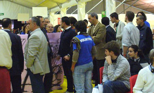 Che si trattasse di una farsa mal congegnata lo dimostrava l’ampio spiegamento di Digos, agenti in tenuta antisommossa, esponenti della security alla creatina e, ducis in fundo, anglosassoni in blu con pistola bene in vista sotto la giacca che volteggiavano tra gli stand della manifestazione. Fuori dal tendone dei dibattiti montato in piazzetta reale, nella contigua piazza Castello, in un unico calderone stavano Medici senza frontiere e frotte di suore, artigianato terzomondialista assortito e Boy scout, danze brasileire e donne in nero, il tutto condito da qualche centinaio di ragazzi radunati a Torino per celebrare lo spirito olimpico.