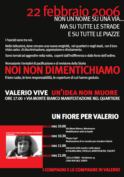 22 febbraio: Valerio Verbano, un'idea non muore