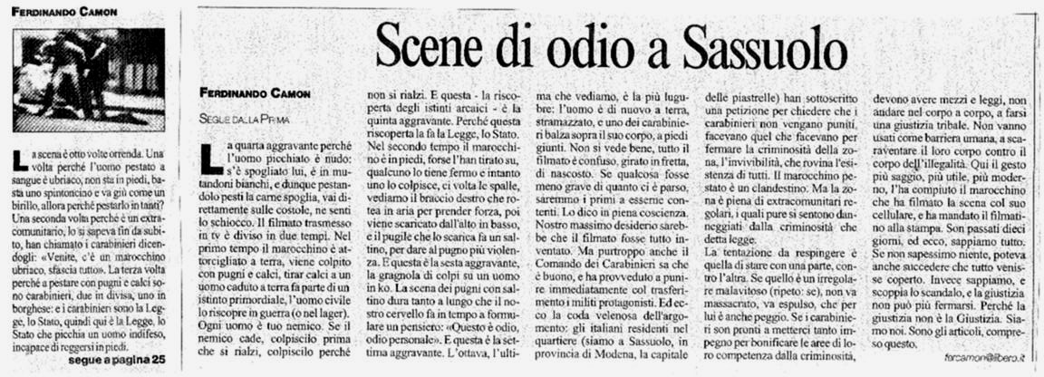 Ferdinando Camon: commento al pestaggio di Sassuolo