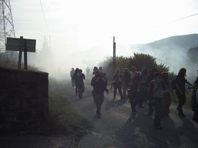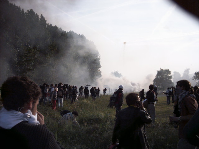 a saint cergues sono state usate granate a concussione. La poliyia sta cercando di attaccare la demo attraverso i boschi. UNa persona e' ferita alla mano e un altra e ferita alla testa, entrambe ferite acausate dai lacrimogeni sparaati ad altezza uomo. almeno 4 persone sono stati arrestati e molte persone hanno perso conoscenya. Gli arresti sono avvenuti su William Fraise. I manifestanti stanno cercando di prevenire attacchi della polizia passando per i boschi |