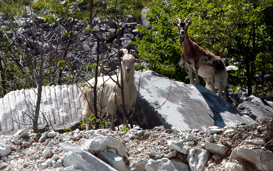 Eros: Salviamo le Apuane lotta su due punti. Primo, sulla questione della devastazione ambientale causata dall’escavazione del marmo; secondo, contro l’abbandono della montagna. Sono due problemi intimamente connessi. Là dove si abbandona un territorio avanzano delle forze che se lo prendono in gestione. Oggi le Apuane sono dominate da alcune grandi multinazionali che gestiscono tutta la faccenda dei detriti provenienti dagli esuberi di cava. La cava, infatti, per ogni blocco di marmo pulito produce tre tonnellate di scarti o, meglio, sottoprodotti. Questi sottoprodotti vengono utilizzati dalle multinazionali per fabbricare prodotti industriali di vario tipo, dallo sbiancante per dentifrici e vernici al fissante per le gomme dell’auto, dai filtri per le centrali a carbone a innumerevoli altre sostanze chimiche. La situazione più critica, ovviamente, è quella dietro a Carrara, che ha una cava ogni chilometro quadrato; qui siamo a un livello di devastazione immane. E’ una zona che è stata volutamente lasciata fuori dal Parco delle Apuane, perché lì vige un mondo a sé: la situazione ambientale è a un livello di morte, basta fare un giro per i bacini di Carrara per rendersi conto che lì ormai non c’è più niente. Ma il problema più grosso è che questo modello di industrializzazione del territorio si sta estendendo, o almeno ci stanno provando, anche perché c’è un grosso interesse dietro al carbonato di calcio. Il marmo puro bianco è al 100%, o quasi, carbonato di calcio allo stato puro, è un minerale preziosissimo per l’industria chimica, perché non ha bisogno di lavorazioni per la purificazione come i materiali provenienti da altri posti. Le situazioni di maggiore criticità ambientale riguardano tutte quelle cave che insistono sui sistemi carsici, dove nasce l’acqua, quindi in definitiva su tutte le Apuane, perché le Apuane sono un grande sistema carsico. Posso citare, oltre a Carrara, anche la zona di Massa, la Val Serenaia, Vagli e altri luoghi della Garfagnana. Gli impatti stanno diventando molto grossi e tengo a sottolineare che è tutto legale e legalizzato: la Legge Regionale 78 permette alle aziende di creare queste situazioni, in fondo le leggi si fanno sempre per mantenere un certo tipo di economia. Tra le zone più devastate potrei scegliere il Corchia, il Picco Falcovaia, la Focolaccia, l’Orto di Donna o la Val Serenaia. Secondo noi ci troviamo in una grande emergenza ambientale diffusa, siamo in una situazione di non ritorno già ampiamente superata. Abbiamo fatto un documento, reperibile on-line e intitolato “Emergenza Apuane”, in cui diciamo chiaramente che si è già superata una soglia. Sulle Apuane in 30 chilometri in linea d’aria abbiamo 780 siti di escavazione fra cave attive, inattive e saggi di cava. Il nostro territorio ha già dato assai… Andando a vedere i risvolti per le popolazioni che vivono intorno alle cave, c’è da dire, innanzitutto, che ci troviamo di fronte una popolazione che difende e sceglie un tipo di sviluppo. Purtroppo, attualmente, registriamo un po’ questa situazione. Detto questo, bisogna evidenziare che la parte principale, apicale, del problema riguarda il bene dell’acqua. Le Alpi Apuane sono uno dei sistemi carsici più importanti d’Europa, il Frigido è la sorgente più grande della Toscana, altre sorgenti danno da bere a tutte le città che stanno intorno: La Spezia, Massa, Lucca ecc. fino ad abbracciare la Garfagnana e la Versilia. Tutte queste aree attingono al bacino apuano che, insieme alle Alpi Carniche, rappresenta il posto più piovoso d’Italia; un patrimonio, dunque, dal punto di vista dell’acqua. Ora, il marmo è un materiale poroso che si lascia penetrare dagli inquinanti liquidi, se si mette dell’olio su un blocco di marmo il giorno dopo lo si ritrova sotto. Nelle cave succede di tutto e di più e si lavora con macchinari soggetti a frequenti sversamenti. Lo stesso taglio del marmo viene effettuato con seghe elicoidali che contengono metalli pesanti, i quali si sgretolano finemente e finiscono nelle falde acquifere. Queste ultime risultano dunque piene di marmettola (la polvere che deriva dal taglio del marmo), di metalli pesanti, di oli e carburanti. Inoltre, tranciando le falde con le cave e intercettando i condotti carsici, si arriva direttamente a distruggere le falde stesse. L’acqua non entra più nel monte, non viene più accumulata nei bacini interni, incanalata e convogliata nei condotti naturali. Il disastro del Mugello è sotto gli occhi di tutti: sette falde acquifere sono state seccate a causa dei lavori del Tav e, oggi, molti paesi sono costretti a prendere l’acqua dal Bilancino. Riguardo alla salute c’è poi tutta la questione delle polveri, anche se ora sembra parzialmente risolta, soprattutto a Carrara, con la strada dei marmi. Tuttavia la situazione stradale vede ancora il problema degli enormi camion di marmo che passano per paesi e città: solo ieri un blocco di marmo è cascato davanti a una scuola a Carrara…