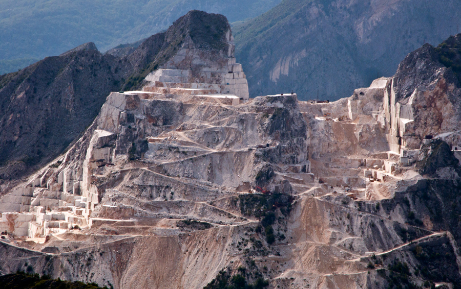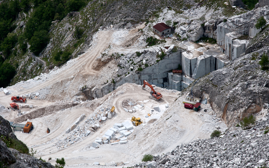 Eros: personalmente, non ho sempre riscontrato delle posizioni totalmente negative da parte dei lavoratori. Alcuni cavatori, soprattutto nella zona di Carrara e in altre piccole situazioni, sono in un certo senso lavoratori privilegiati: è certamente un lavoro usurante, ma guadagnano piuttosto bene. Rischiano, però, la vita; perché lì si muore: nelle cave la mortalità è alta, basta veramente un nulla. Le ruspe sono enormi, tutto è a dimensione ciclopica, le sproporzioni fanno sì che basti davvero poco per rimetterci la vita. Molti, in tutta sincerità, ti dicono che se avessero altro da fare sarebbero ben felici di cambiare. Anche perché vivono male la situazione di dover lavorare distruggendo la loro montagna: lì ci stanno tutto il giorno e si rendono conto del paesaggio che hanno intorno. Ci sono molti ex cavatori che sono totalmente contrari a ciò che sta avvenendo, nonostante abbiano passato una vita in cava. Anche perché prima c’era un altro rapporto tra il cavatore e la montagna, oggi vanno lì, attaccano le seghe e in due mandano avanti quattro cave; le seghe avanzano da sole, a scorrimento. Bastano poche persone per distruggere un’intera montagna e si cava in un giorno quello che una volta si cavava in tre mesi. Nelle cave oggi lavorano meno di 1000 persone, nel passato sono state anche più di 30.000. Se uno compara i dati nel tempo capisce che le cave non creano occupazione, ma disoccupazione e povertà sul territorio. La provincia di Massa-Carrara è la più povera e la più indebitata della Toscana e tra quelle messe peggio in Italia. Ci sono dei dati oggettivi. Per quanto riguarda la popolazione, bisogna specificare che quella stanziata nelle zone apuane in cui non ci sono cave vive e soffre le conseguenze e gli effetti delle cave. Infatti, quando dei poteri così forti come quelli espressi dalle multinazionali comandano un territorio ovviamente non vogliono il turismo, perché i turisti “rompono i coion”, perché vedono quello che succede. Non li vogliono nelle cave ma nemmeno nelle zone limitrofe: se mi affaccio alla Pania vedo che sul Corchia è tutto sventrato, sento i rumori delle ruspe, i biip biip biip…, roon roon roon…, è questa la colonna sonora andando per le Apuane. La cava inquina le acque, produce inquinamento acustico e atmosferico, rende impraticabile lo sviluppo di attività alternative: le zone di non cava sono tutte profondamente addolorate da questa cosa; sono tuttavia molto timide, torna loro male dire: smettete di cavare. Ultimamente, però, in queste zone si sta formando tutto un movimento di persone che comincia a rendersi conto di quello che succede. Nelle zone di cava, invece, c’è una percezione erronea, si vedono cioè le cave di oggi come erano in realtà trent’anni fa. Questa percezione falsata è dovuta anche alla divulgazione, la diffusione del mito del cavatore. Solo ora tale percezione comincia ad essere intaccata, grazie anche alle nostre uscite sulla stampa nazionale e internazionale. Paradossalmente, ma neanche tanto, più il messaggio proviene da fuori più riusciamo ad arrivare al cuore delle nostre persone: venendo da fuori il messaggio riesce ad essere più chiaro. Molti non sanno che ci lavora così poca gente, molti non sanno ciò che avviene alle falde acquifere. Nelle zone di cava forti, come Massa e Carrara dove il tema è tabù, la maggior parte della gente non conosce a fondo la questione. Parlare di cave in queste zone è veramente difficile e quindi capisco anche gli amici del Movimento 5 Stelle che probabilmente hanno delle grosse difficoltà a prendere delle posizioni nette sul territorio. Li comprendo, in parte, a livello territoriale, ma a livello regionale e nazionale assolutamente no, non posso permettere a nessuno la giustificazione di un tale disastro. Purtroppo, dunque, questa è la percezione: la cava dà pane, “il marm ì pan”. Questa convinzione è ancora molto forte, anche se si sta sgretolando: prima ogni famiglia aveva due o tre persone che lavoravano in cava, oggi la situazione è molto più rarefatta. Inoltre, le condizioni di lavoro sono mostruose e chi le vive lo sa bene: in cava ci si brucia, perché sei circondato dal bianco, l’effetto albedo è terribile, starci nel mezzo in estate è come essere in un forno a microonde. A Fantiscritti c’è un piccolo museo sulla storia del marmo, a un certo punto c’è una gamba di legno di fico: quando un cavatore perdeva un arto per infortunio, s’intagliava, da solo, una gamba di legno e tornava in cava, per non morire di fame. Da questo aneddoto possiamo immaginarci la situazione vissuta da questo popolo nel passato: era una vera e propria schiavitù. Bisogna smontare il mito del cavatore e partire, invece, da questi fatti reali. Per rendersene conto si possono anche guardare i filmati dell’Istituto Luce sul trasporto del monolite durante l’epoca fascista: insaponavano le traversine, le toglievano e le mettevano a una velocità incredibile, se sbagliavi a muovere un braccio eri finito. Ci sono stati dei funerali fatti a Carrara con la bara vuota, perché se si rimane sotto un blocco di marmo… Il contesto antropologico è dunque questo, ed è quindi anche comprensibile la reazione della gente del posto: ha dovuto strutturare tutta una situazione per mantenere in piedi questo sistema economico che oggi barcolla da tutte le parti; però ancora lì è il punto più forte. E sarà sempre il punto più forte.