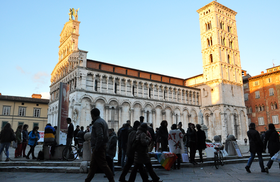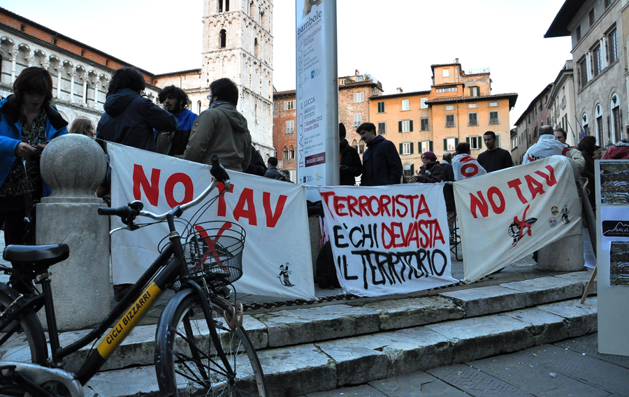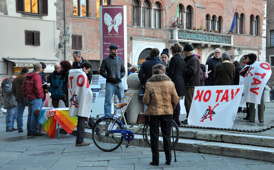 A Lucca, in piazza San Michele, presidio per la GIORNATA NAZIONALE DI MOBILITAZIONE E DI LOTTA OGNUNO NEL PROPRIO TERRITORIO lanciata dal movimento No Tav.