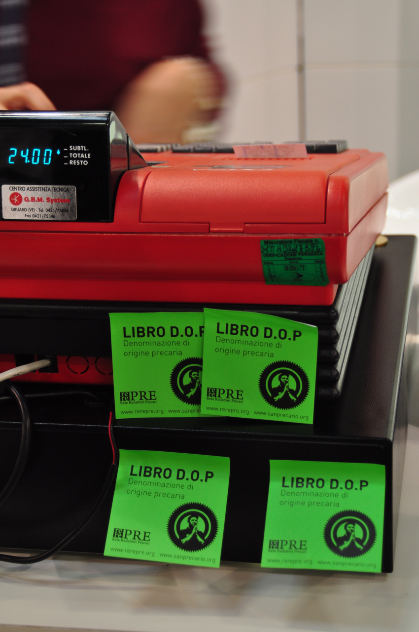 L’azione mirava a sottolineare l’alto livello di precarietà nel mondo dell’editoria: grafici, redattori, correttori di bozze, traduttori, … un esercito di partite iva di facciata, di contratti atipici, flessibili, a cottimo ma che nella realtà spesso nascondono rapporti di lavoro continuativo, un rapporto da dipendenti senza però poter godere dei diritti che spettano a chi è assunto con contratto a tempo indeterminato.