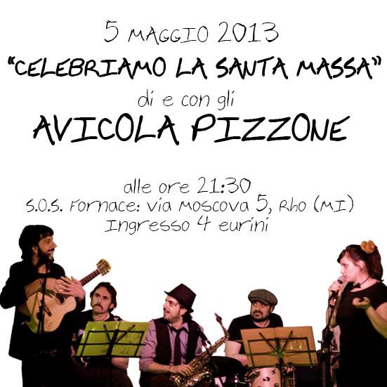 L’eccentrica e satirica banda dell’AVICOLA PIZZONE, col suo “Canta-utturato Manicomico”, dalla parrocchia della periferia milanese, inizia un breve pellegrinaggio per salire sul pulpito della FORNACE in “CELEBRIAMO LA SANTA MASSA”.