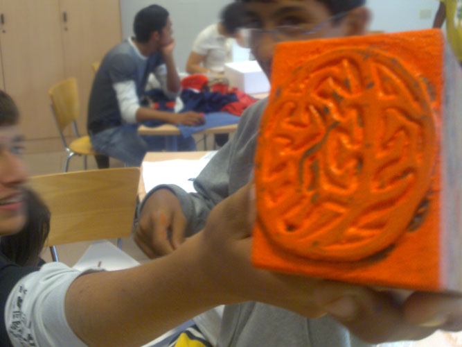 Durante il secondo laboratorio, i ragazzi spesso non si sono limitati ad usare gli stencil già esistenti, ma hanno chiesto di farne di nuovi (coi loro nomi) e di cucire applicazioni di stoffe sulle magliette (un ragazzo, di origine serba, ha voluto mettere i colori nazionali serbi sulla sua maglietta modificata).