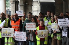 Bergamo – Nel pomeriggio di ieri è andata in scena, davanti al Palazzo della Provincia, la contestazione al meeting degli oltre 45 delegati dei paesi che parteciperanno all’Expo 2015. Di fronte all’ingresso è stato srotolato un lungo “tappeto rosso” con i nomi di tutti i territori su cui la grande esposizione mondiale si estenderà. Di fianco, uno striscione dichiarava: “Expo = cemento, debito, precarietà” a ricordare quanto EXPO 2015 sia un’escamotage pubblicitario volto a giustificare progetti speculativi e cementificazione diffusa, in particolare la realizzazione di strade come la T.E.M., la Bre.Be.Mi, la Pedemontana.