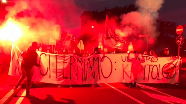 Dopo la notizia del sequestro della Kascina, la Lega cittadina ha espresso la sua soddisfazione, attribuendosene il merito: il consigliere Ribolla già mesi fa presentò un’interpellanza per chiedere lo sgombero. Vedere il Pd e la Lega esprimere all’unisono il proprio compiacimento sulla questione dimostra ancora un volta come queste due forze politiche abbiano molti punti in comune su temi quali sicurezza e legalità. Sia a livello nazionale (pensiamo alle politiche migratorie di Minniti, ministro Pd, e di Salvini) che nella nostra città, in cui la giunta Gori continua a reprimere il “degrado”, a distribuire multe e daspo ai senzatetto, implementare i controlli polizieschi, costruire e impacchettare l’immagine della città vetrina e del decoro: tutte politiche che potrebbero benissimo essere portate avanti dalla Lega. Il collettivo della Kascina, insieme a decine di solidali, ha organizzato ieri sera un corteo molto partecipato che si è mosso per le strade di Monterosso, arrivando di fronte alla Kascina, in cui sono stati murati gli ingressi, circondata da un numero spropositato di agenti in assetto anti sommossa. Il Kollettivo e le numerose persone che hanno attraversato la Kascina in questi anni han fatto sapere che non si fermeranno; le mobilitazioni, le assemblee e le azioni continueranno nei prossimi giorni.
