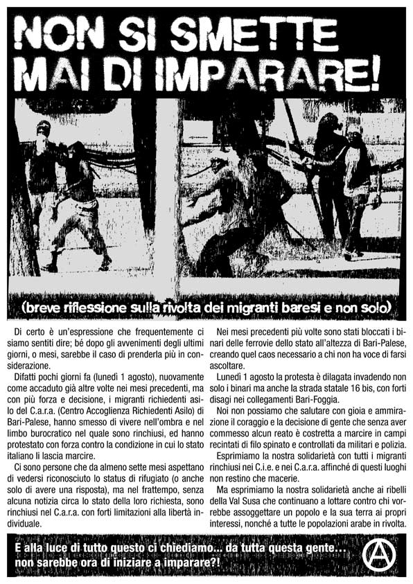 Con la forza dei nostri desideri e con le armi della solidarietà vogliamo sconfiggere l'ossessione di controllo di chi nega il diritto all'esistenza e l'avidità di chi trasforma la conoscenza in un lusso.