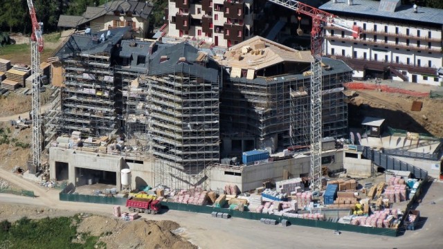 Infine, il Belmont, un faraonico hotel, una sorta di cattedrale nel deserto. “La migliore delle residenze delle Alpi italiane” si legge nel loro sito “il lusso e la comodità che hai sempre cercato nel Parco naturale delle Orobie a Foppolo“. Avrebbe dovuto essere completato per il 2014, ormai si è a gennaio 2017 e il cantiere è ancora fermo. Un investimento da 13 milioni di euro, che costituisce il 10% del progetto rimasto sulla carta. Un complesso di 28 appartamenti ( nella parte residenziale mancano solo le finiture ) e 35 camere d’albergo, Spa, ristorante, pub, negozi, ski room e 70 posti auto, governato da imprenditori bergamaschi e non solo: la squadra di proprietà fa capo alla Foppolo Risorse, una srl partecipata dal Comune di Foppolo al 23,5% e da Devil Peak, altra società dove il 36,16% fa capo a Nexenti, detenuta al 100% dalla Cir di De Benedetti. Il sogno americano dA trasportare, da impiantare nelle Orobie si è però infranto assieme all’altro grande investimento, il «Villaggio Alpino di Foppolo- Borgo 1630», 150 milioni di investimento complessivo per realizzare 270 appartamenti, 300 camere d’albergo e 1000 posti auto. Per il sindaco Beppe Berera avrebbe dovuto «lanciare in alto Foppolo». Doveva lanciare un turismo d’elite, fatto di russi, inglesi, la “gentry” delle capitali europee che in questa amena località servita da un comodo aeroporto avrebbero trovato sollievo e un buon modo per spendere soldi.